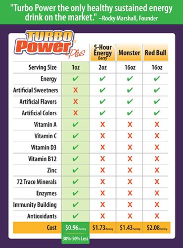 Turbo Power Plus may give you a burst of energy that lasts all day long. You should feel better and sleep better when your body is getting the minerals it’s missing. You may also be more focused throughout the day rather than experience the jitters or crash that come after drinking a typical energy drink. Drink a one ounce serving each morning and see how much more energized you feel!